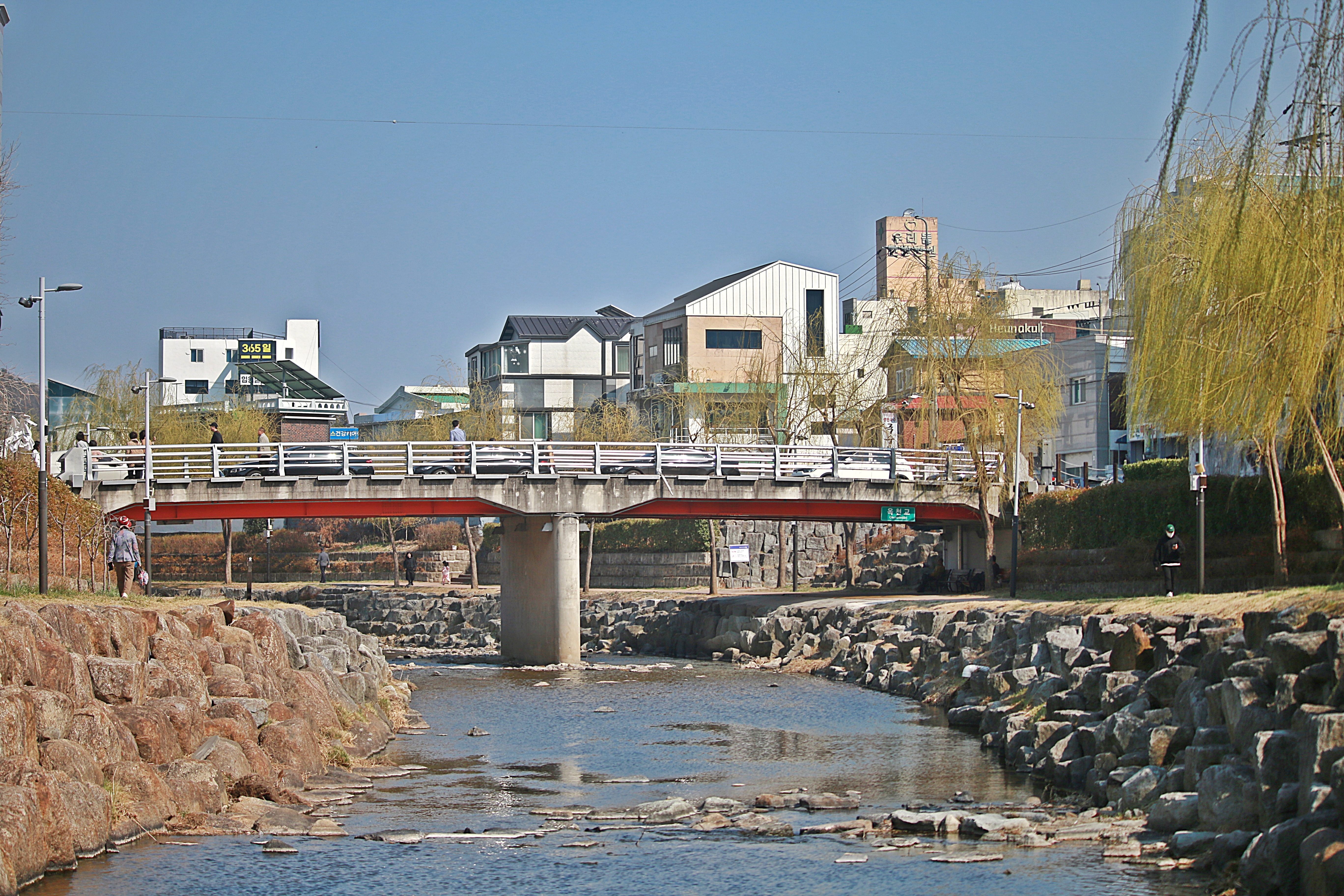 홍매화 명소라는데 순천 시내 옥천변에 위치한 사운즈옥천이다.