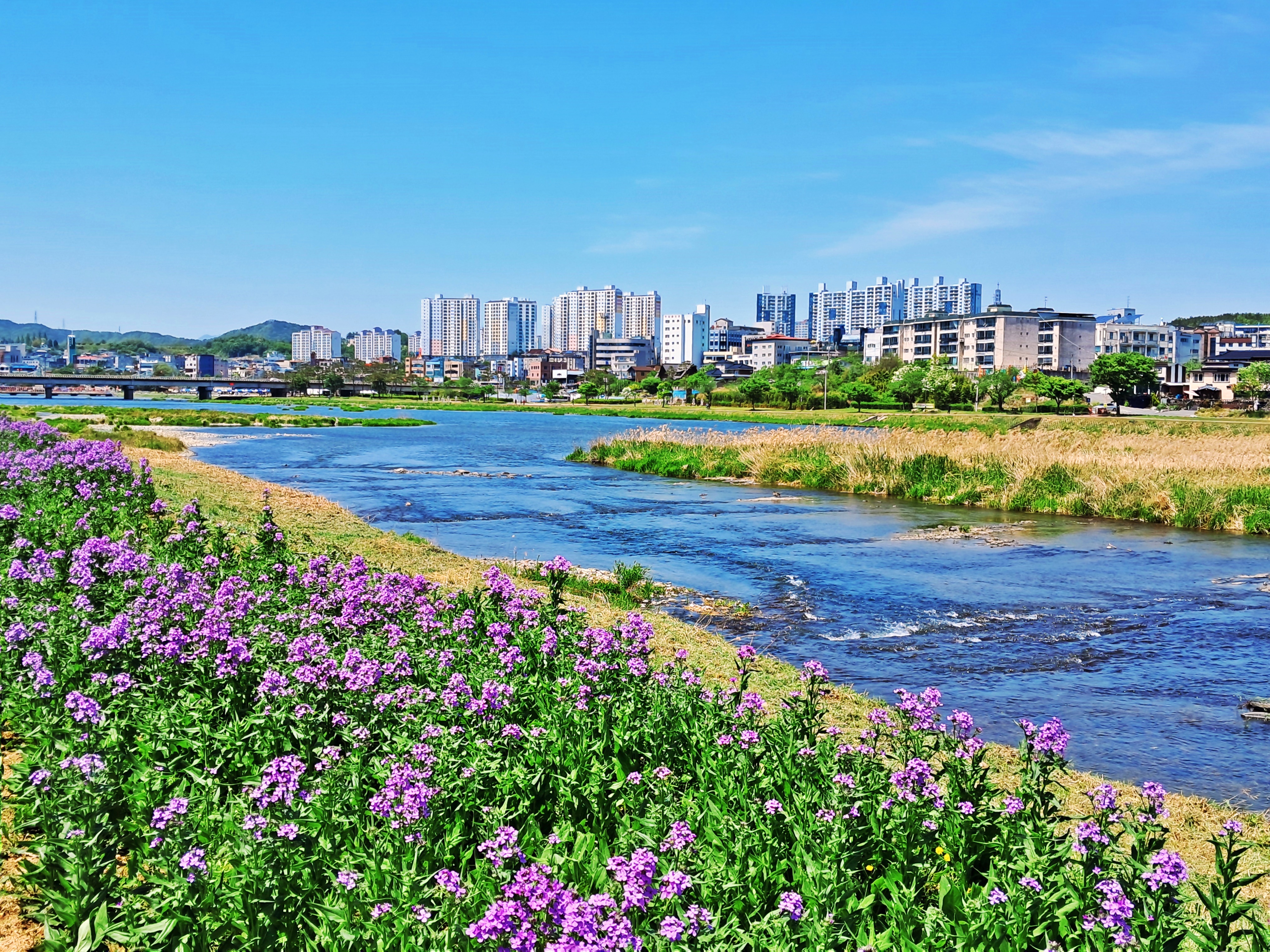 영천 생태구역 내 금호 강변지구에 보라보라유채가 한창이다.