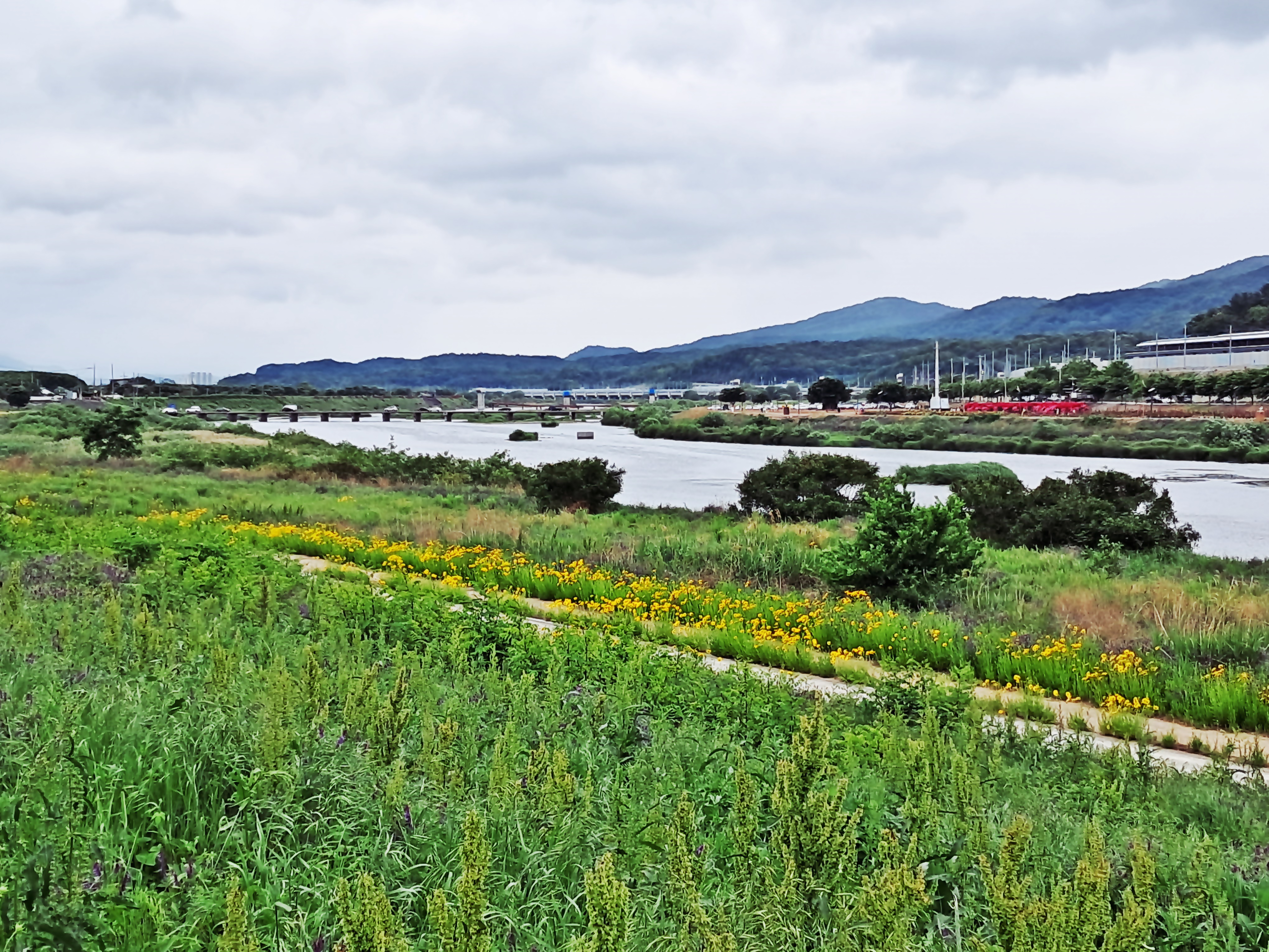 둑으로 금계국이 피었다