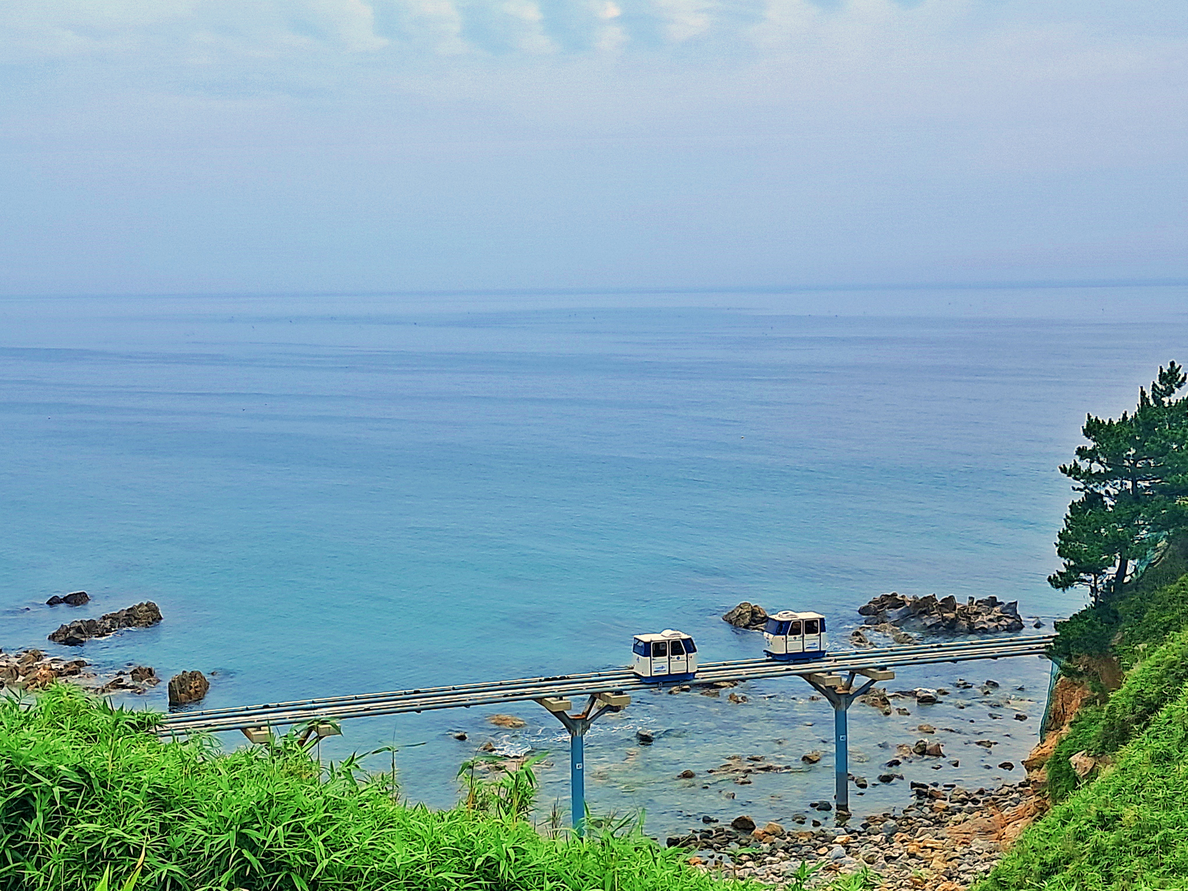 죽변의 명소가 된 바다 모노레일 이용객이 휴가철이라 더 많은 것 같다.