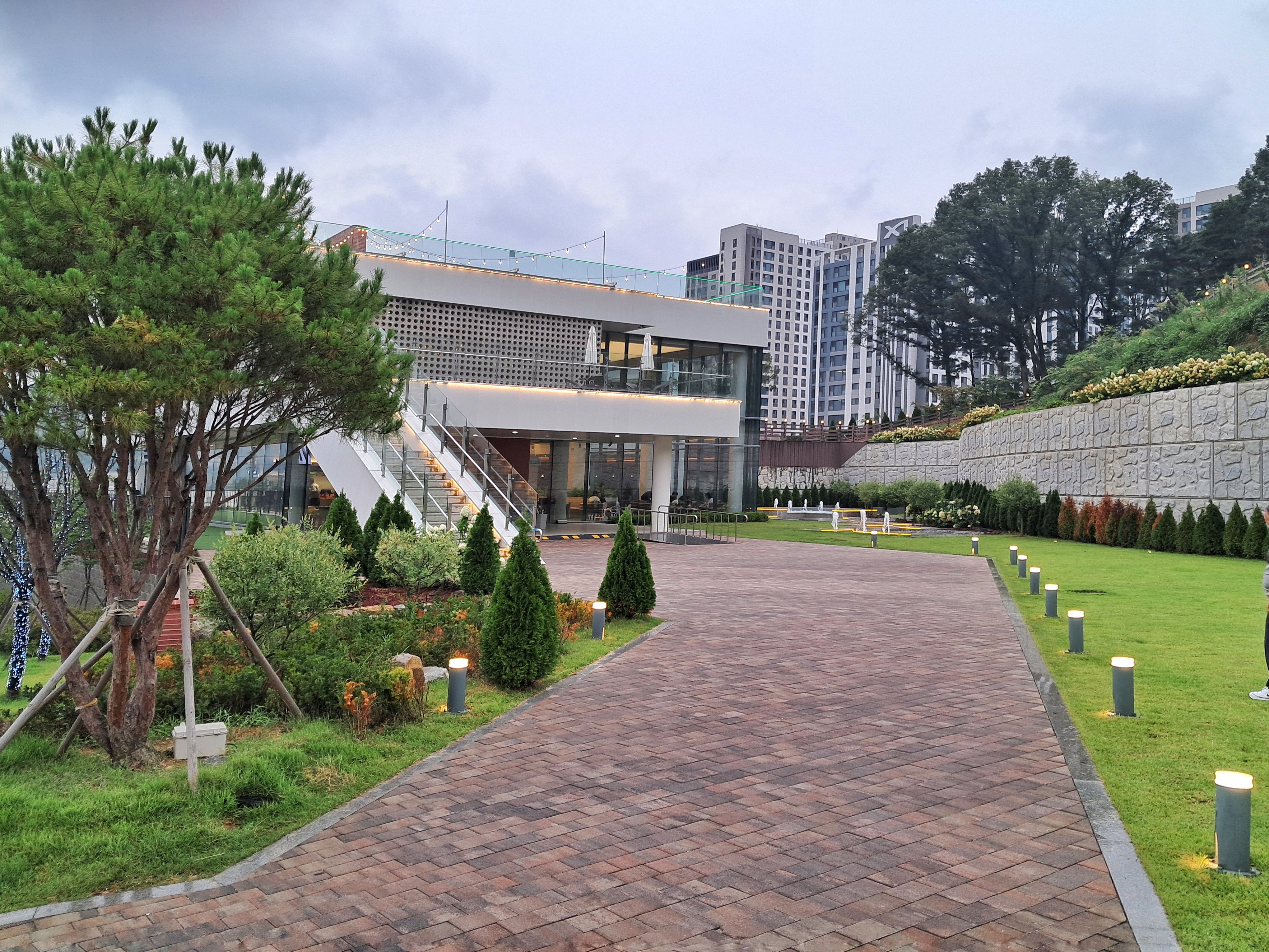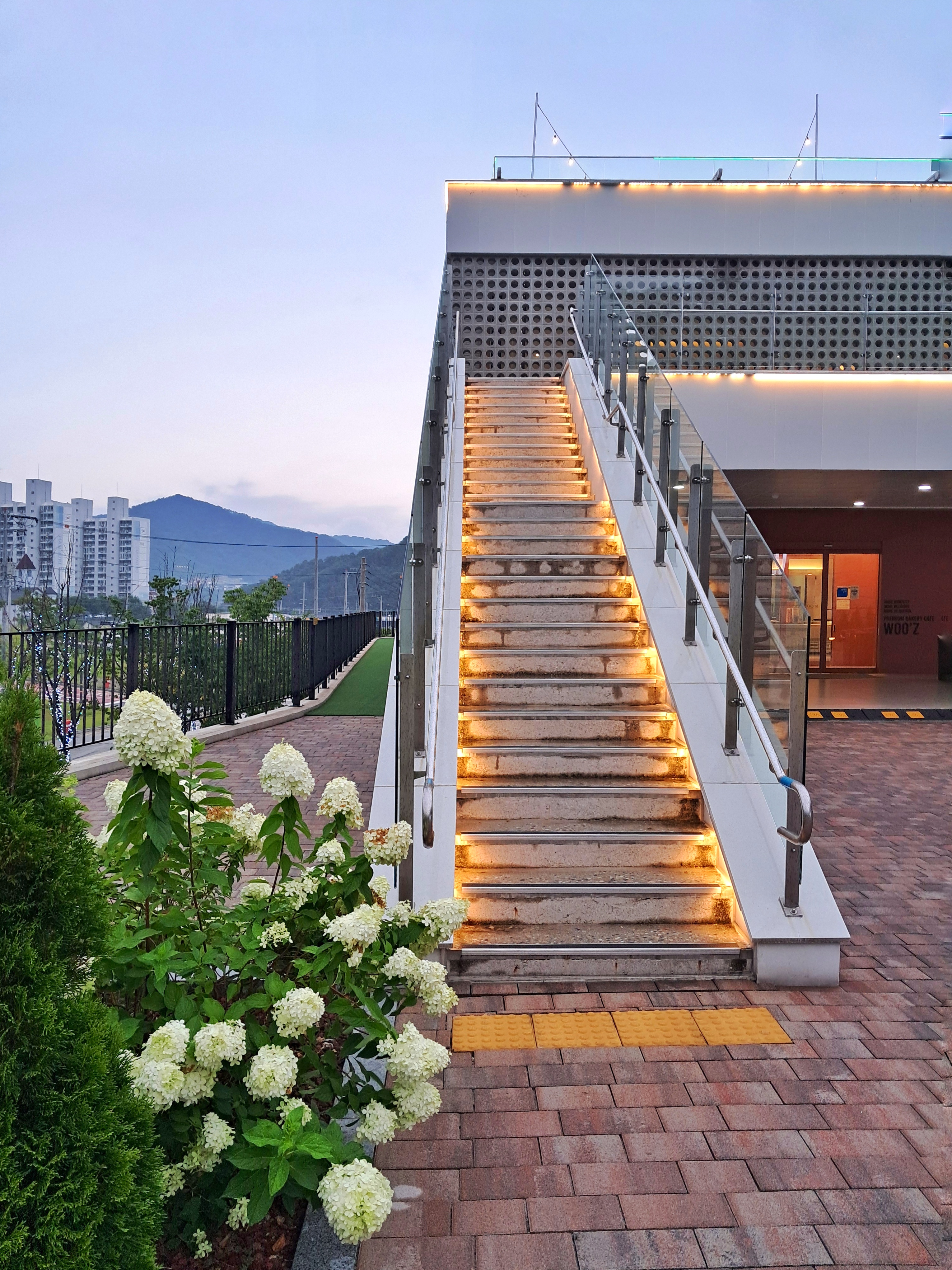 주변이 푸른 녹지로 둘러 싸여있고, 작은 데크길에 루프탑까지 있으니...