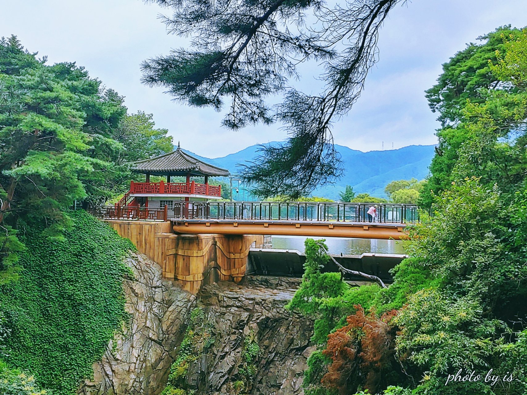 수위조절을 하는 용추폭포와 제방 위 노송은 오랜 세월 동고동락하며 시간의 무게를 함께 견뎌왔기에 자연이 선물하는 아름다운 모습을 그대로 보여준다.
