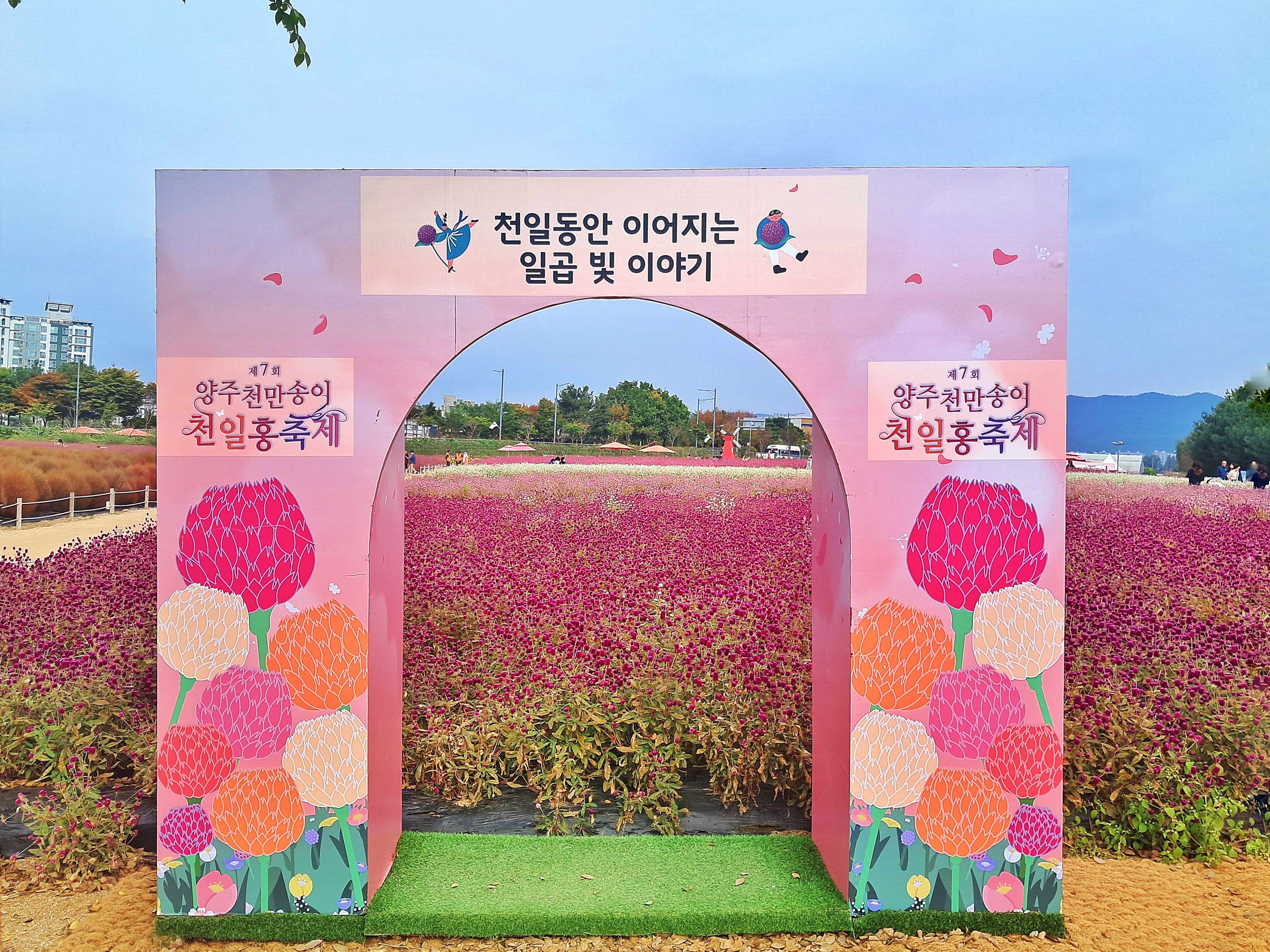 나리농원의 대표적 가을 축제인 천일홍 천만 송이 축제의 끝을 잡고